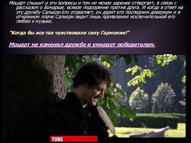 Слайд 15Моцарт слышит и эти вопросы и тем не менее заранее отвергает,