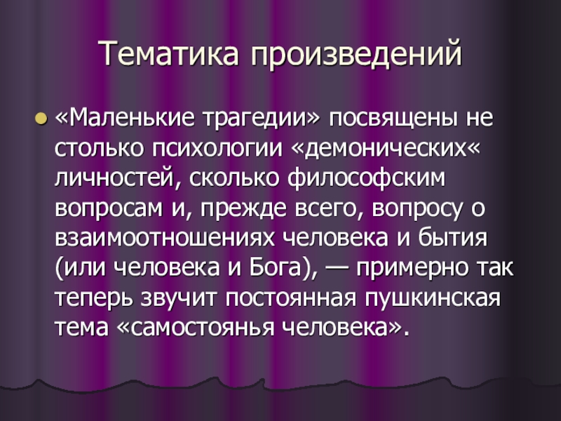 «Маленькие трагедии» посвящены не столько психологии «демонических« личностей, сколько философским