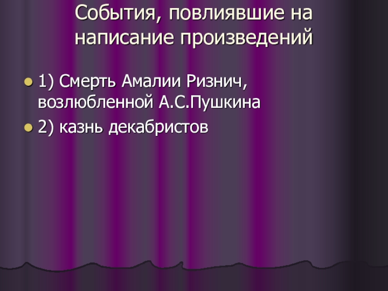 1) Смерть Амалии Ризнич, возлюбленной А.С.Пушкина