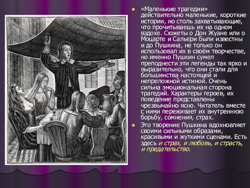 Слайд 3«Маленькие трагедии» действительно маленькие, короткие истории, но столь захватывающие, что прочитываешь