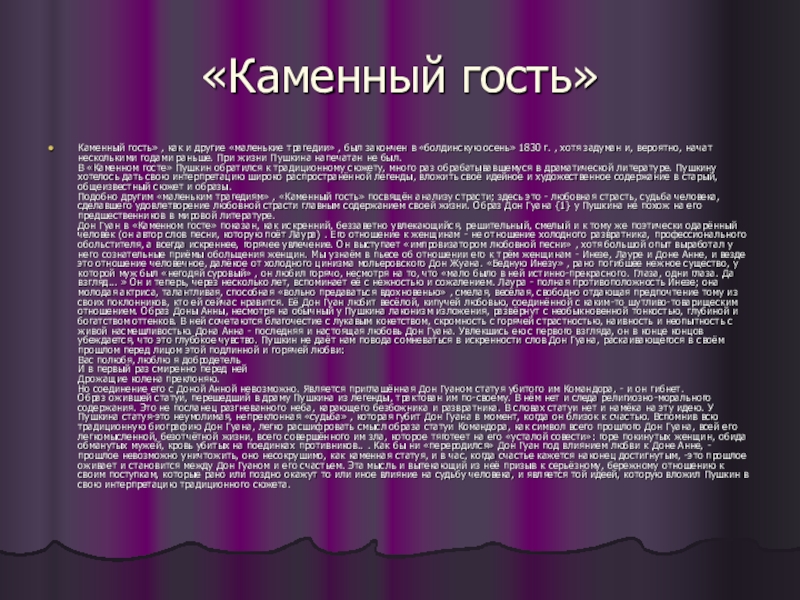 Каменный гость» , как и другие «маленькие трагедии» , был