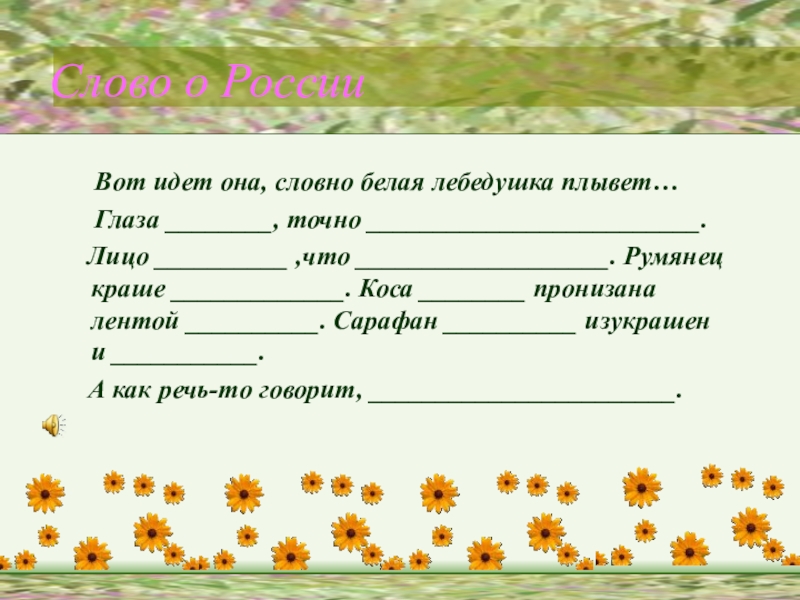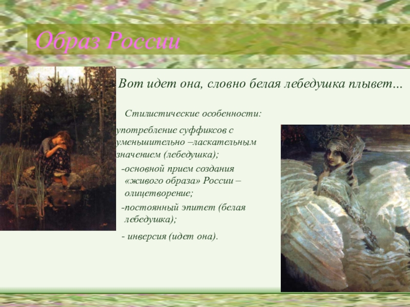 постоянный эпитет (белая лебедушка);