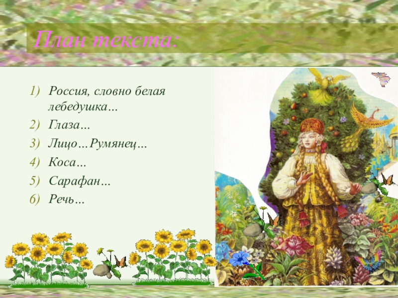Сарафан травушкой-муравушкой изукрашен и цветочками полевыми