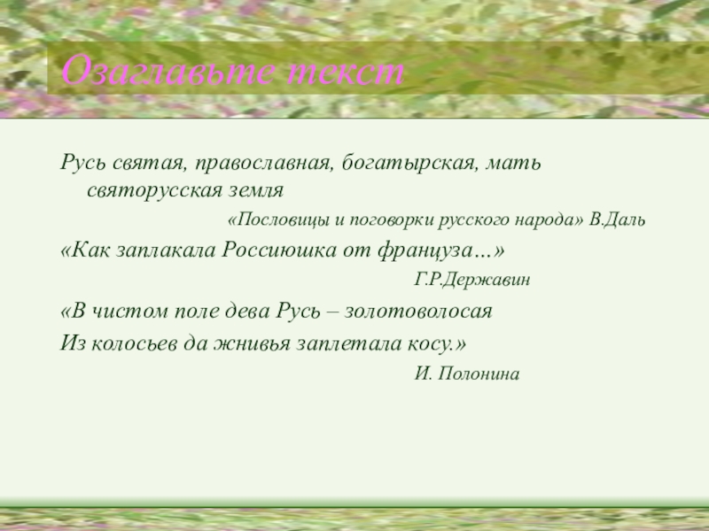 «Гой ты, Русь, моя родная,