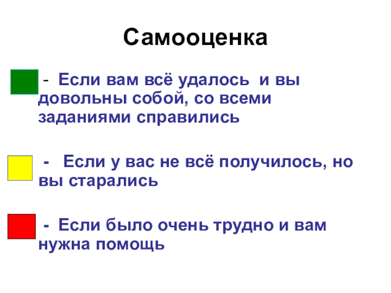 Самооценка - Если вам всё удалось и вы довольны собой, со всеми заданиями справились -  Если
