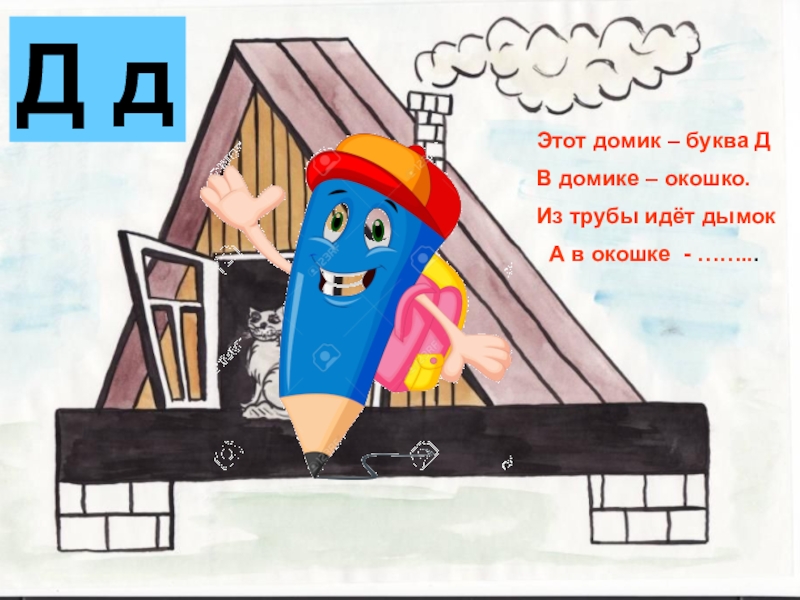 Этот домик – буква ДВ домике – окошко.Из трубы идёт дымок  А в окошке - ……...Д