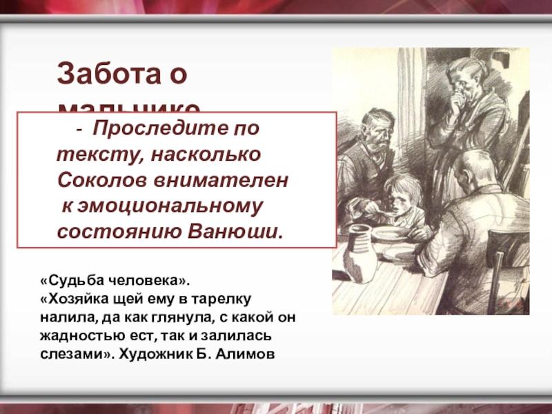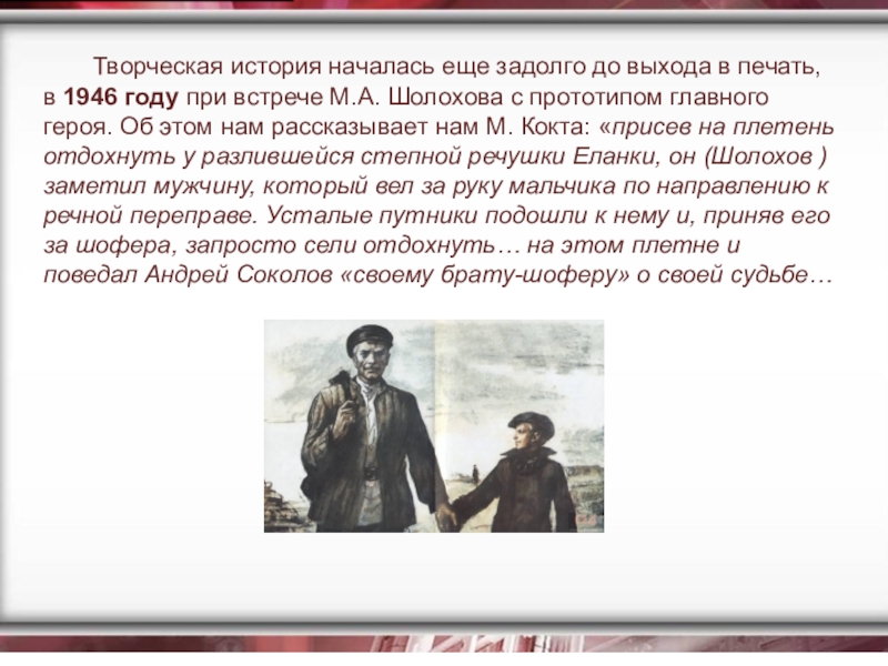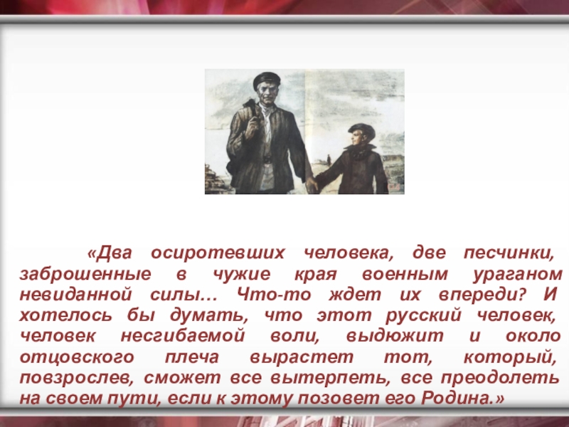 «Судьба человека». Андрей Соколов и Ванюшка. Художник Б. Алимов