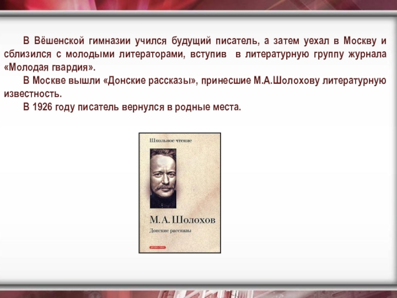 «Как степной цветок, живым пятном» встает среди произведений М.А.Шолохова рассказ