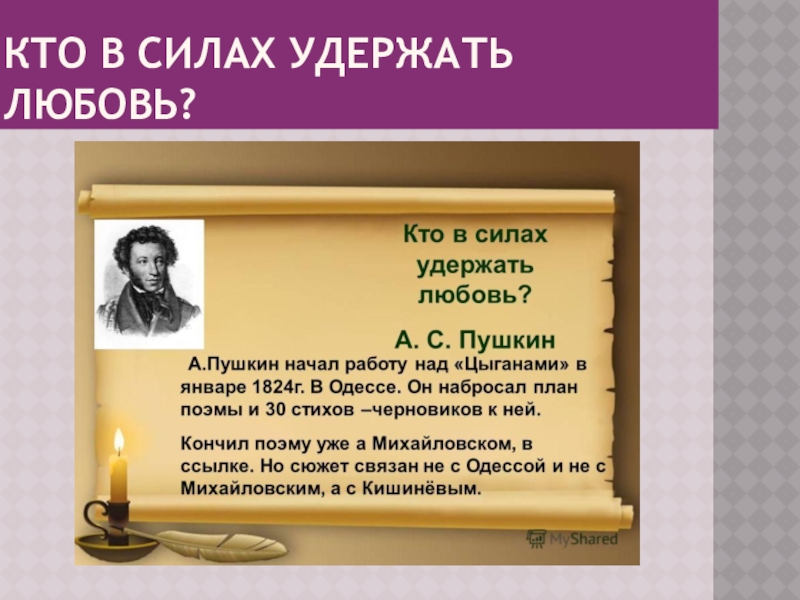 Слайд 3В 1824 году во время кишиневской ссылки была написана поэма Пушкина