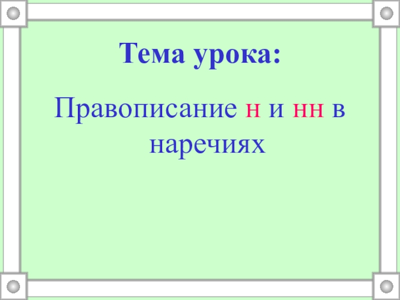 Тема урока:Правописание н и нн в наречиях