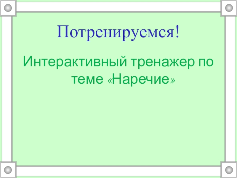 Потренируемся!Интерактивный тренажер по теме «Наречие»