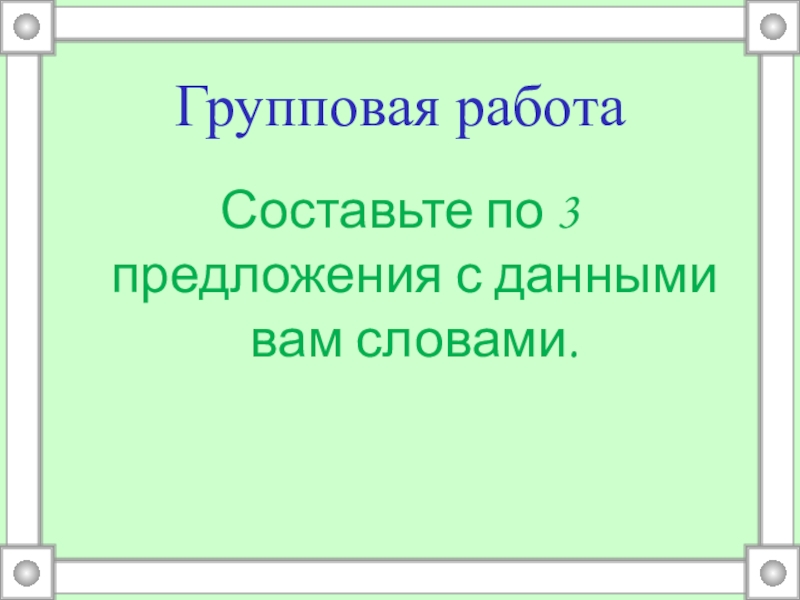 Групповая работаСоставьте по 3 предложения с данными вам словами.