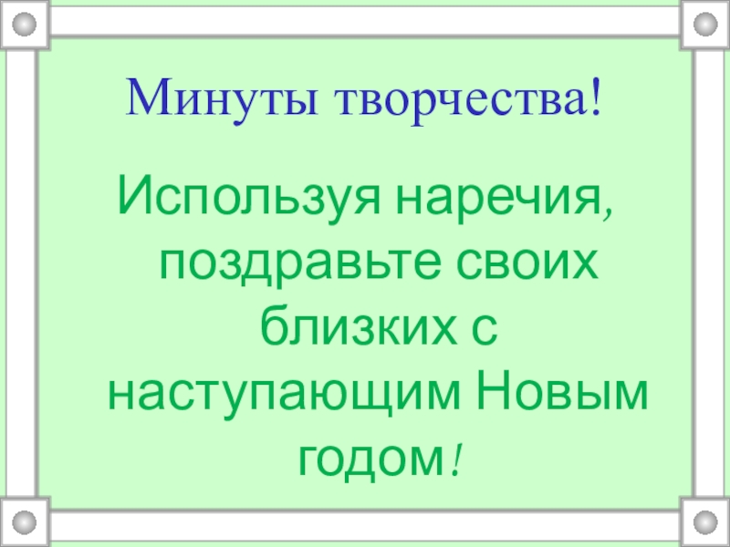 Минуты творчества!Используя наречия, поздравьте своих близких с наступающим Новым годом!