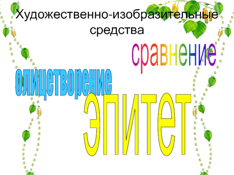 Слайд 1Художественно-изобразительные средства: эпитет, олицетворение, сравнение