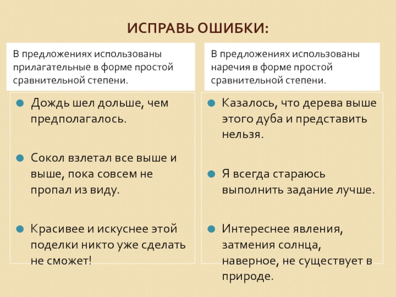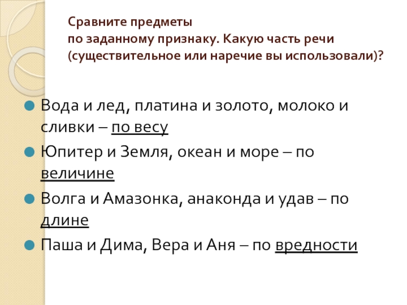 Используя наречия в форме простой сравнительной степени.