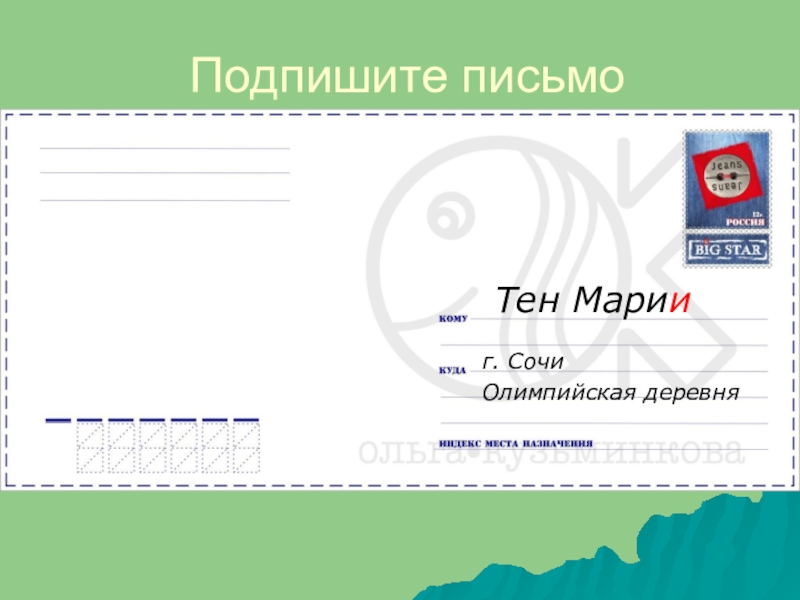 Подпишите письмог. СочиОлимпийская деревняТен Мари__?
