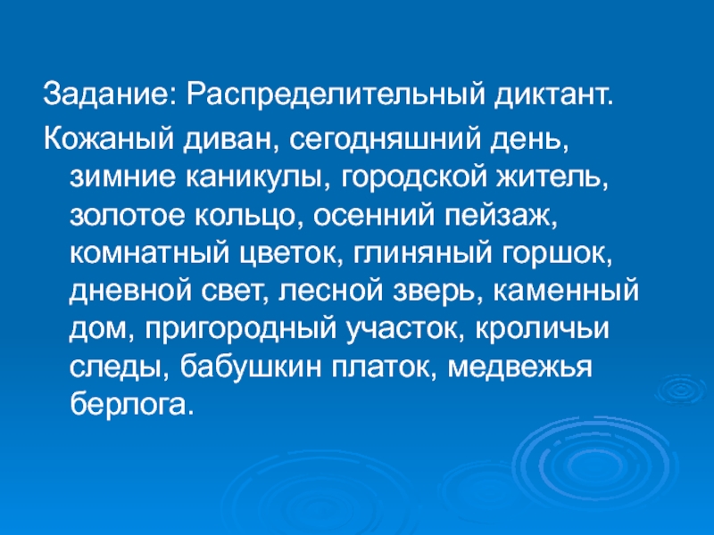 Слайд 8Задание: Распределительный диктант.
