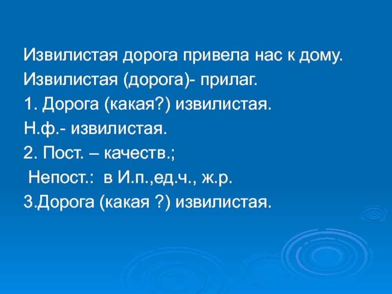 Слайд 17Извилистая дорога привела нас к дому.