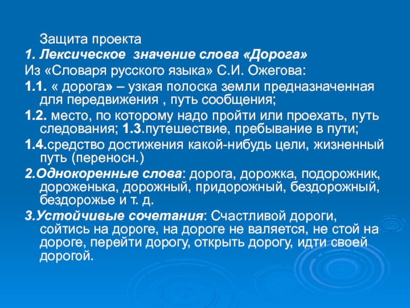 1. Лексическое значение слова «Дорога»