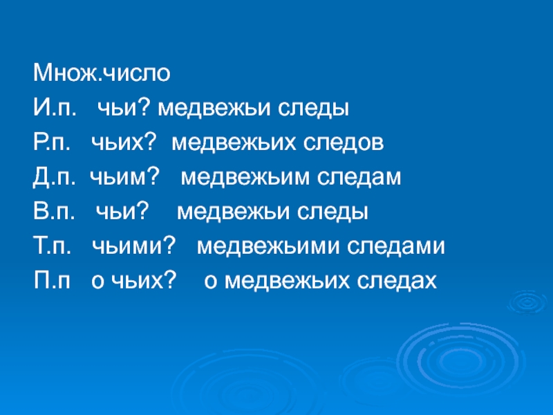 Д.п. чьим? медвежьим следам