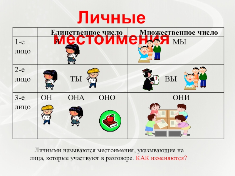 Личными называются местоимения, указывающие на лица, которые участвуют