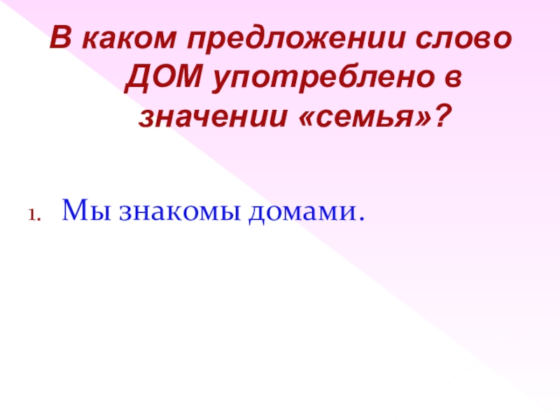 В каком предложении слово ДОМ употреблено в значении «семья»?