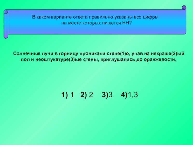 Солнечные лучи в горницу проникали степе(1)о, упав на некраше(2)ый пол и неоштукатуре(3)ые стены, приглушались до оранжевости.