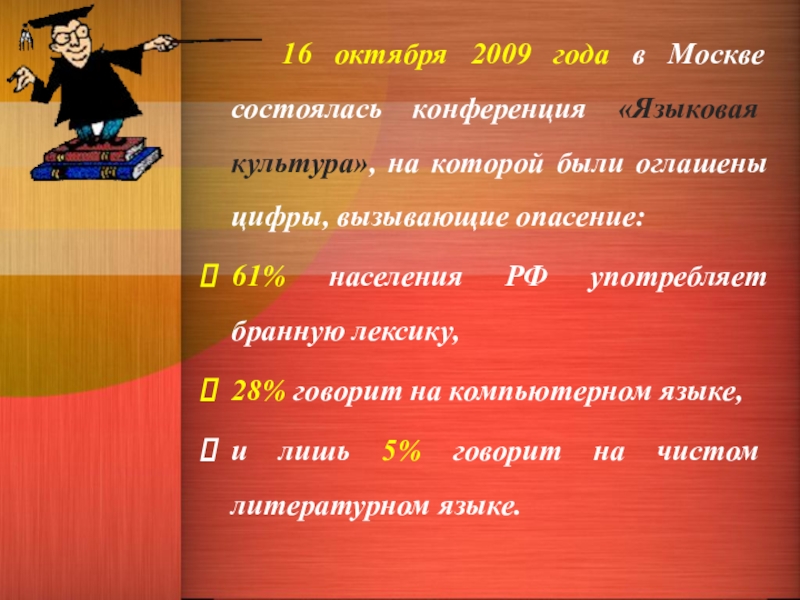 Слайд 7 16 октября 2009 года в Москве состоялась конференция «Языковая культура», на
