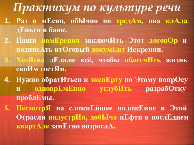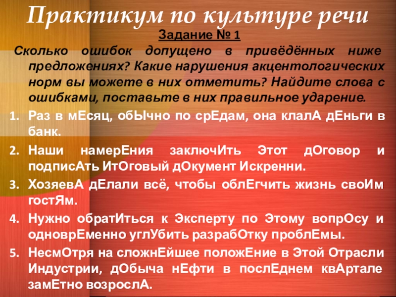 предложениях? Какие нарушения акцентологических норм вы можете в них отметить? Найдите слова с ошибками, поставьте в них правильное ударение.