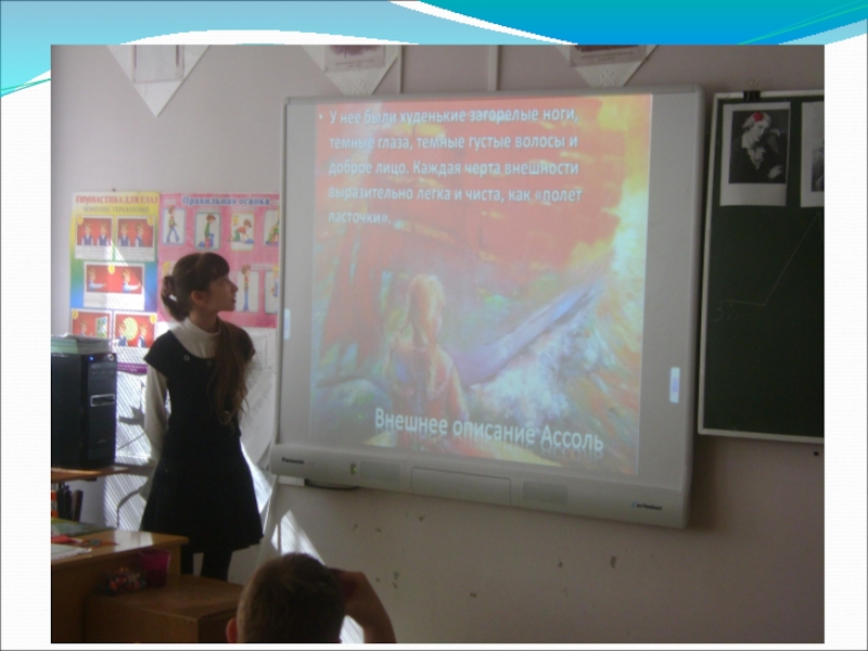Учащаяся представляет работу своей группы (презентация «Образ Ассоль»). Запись собранной