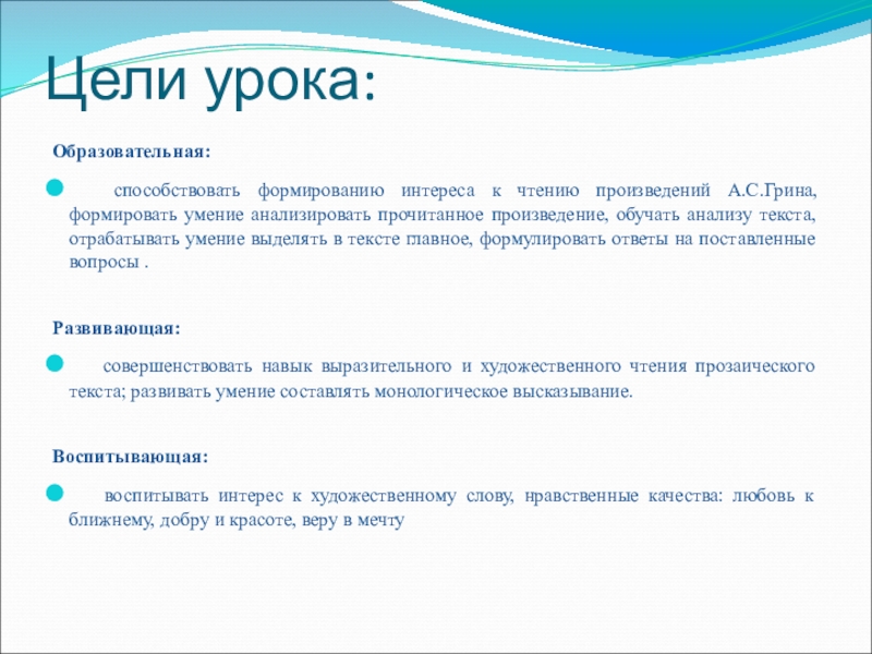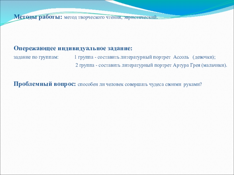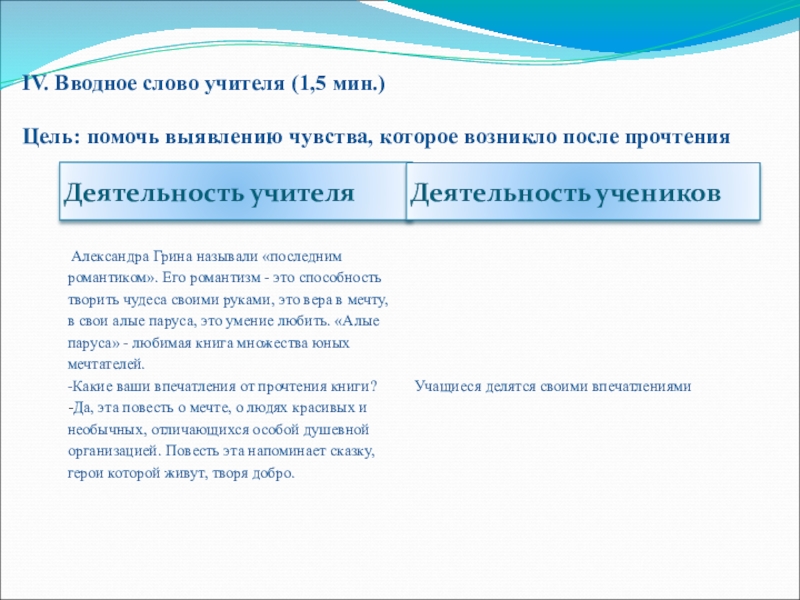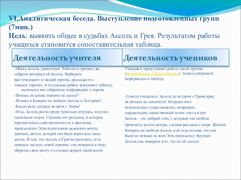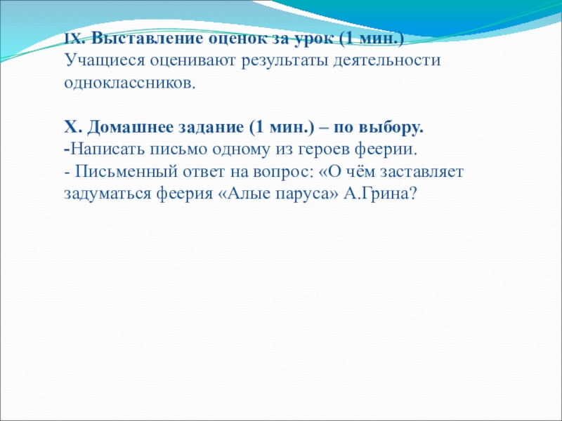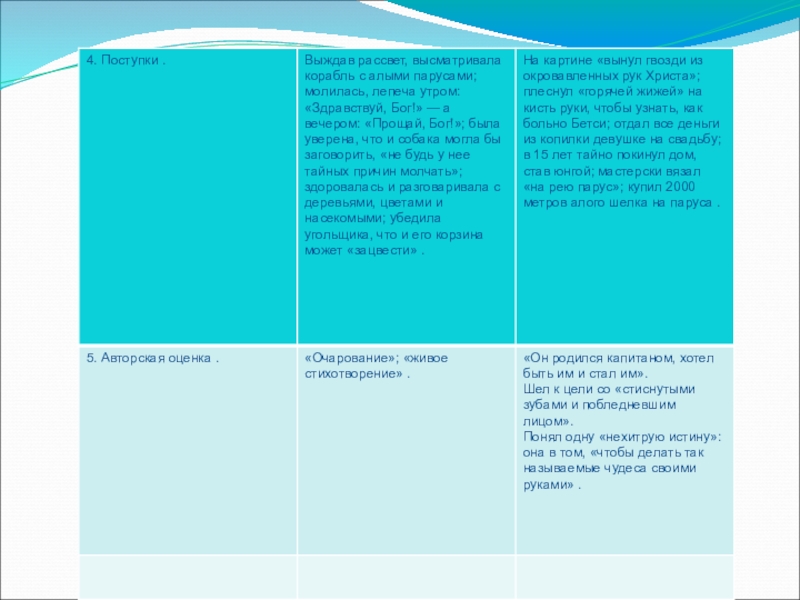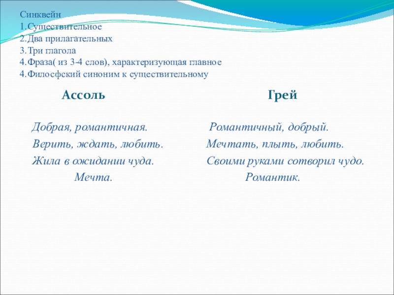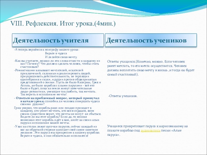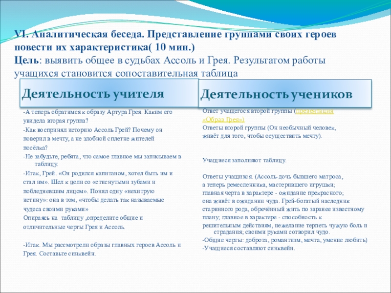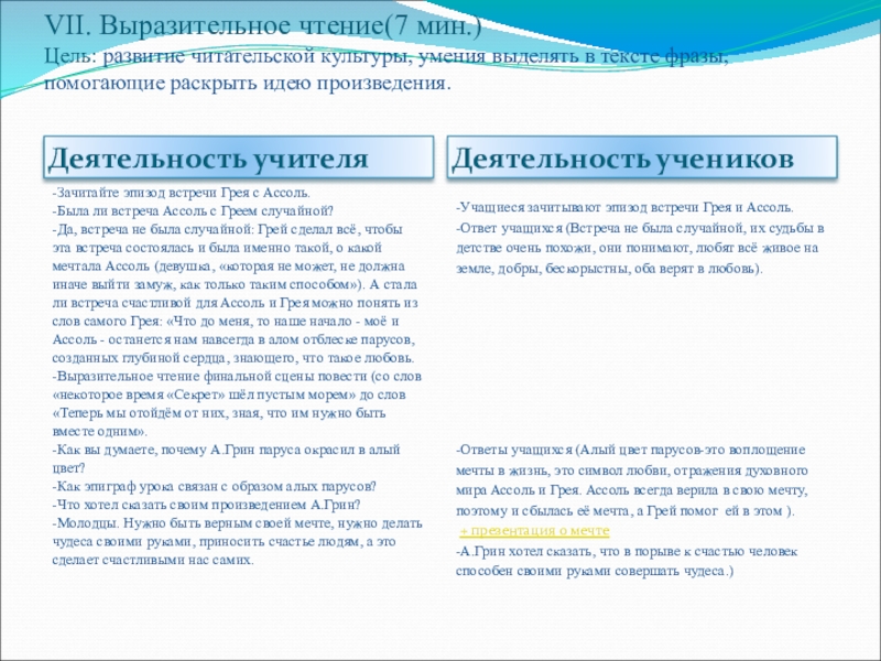 -Учащиеся зачитывают эпизод встречи Грея и Ассоль.