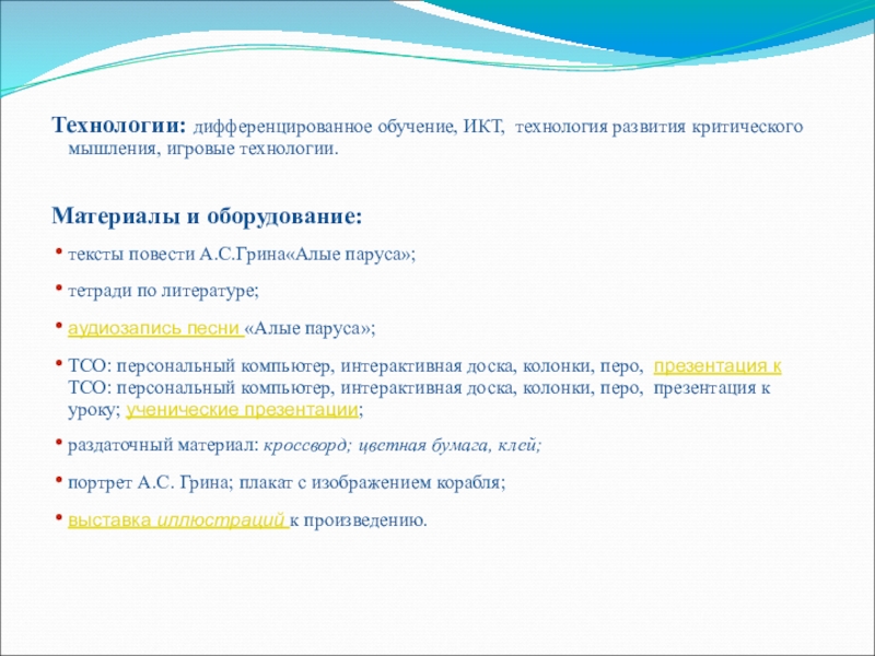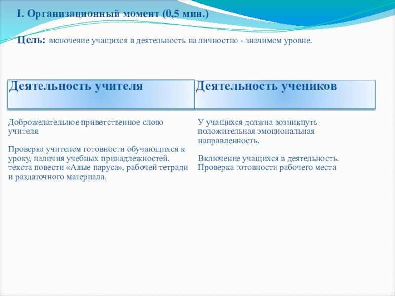 Проверка учителем готовности обучающихся к уроку, наличия учебных принадлежностей, текста повести «Алые паруса», рабочей тетради и раздаточного материала.