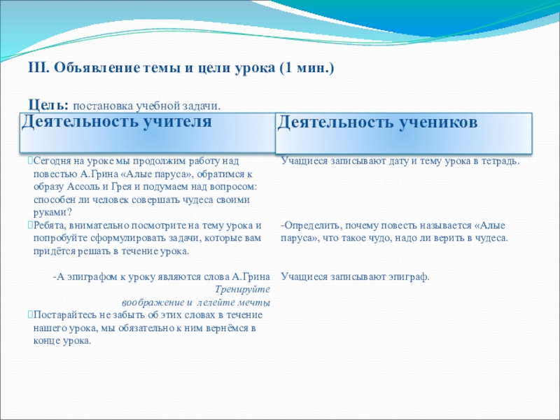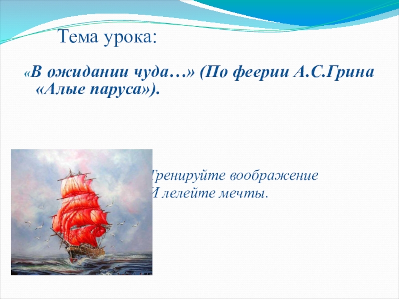 -Определить, почему повесть называется «Алые паруса», что такое чудо, надо ли верить в чудеса.