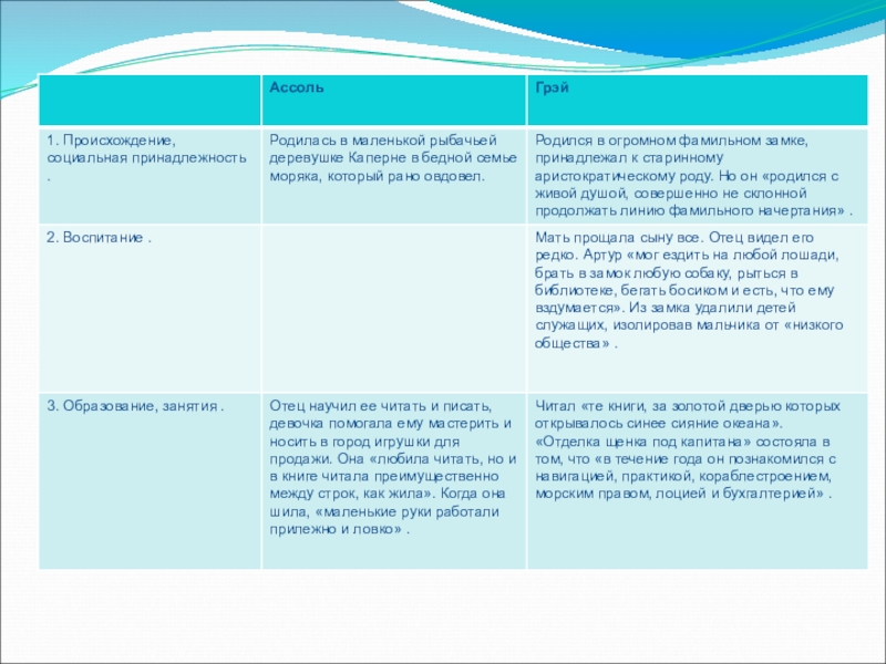 Ответы учащихся. (Ассоль-дочь бывшего матроса,
