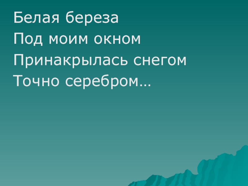 Белая береза Под моим окномПринакрылась снегомТочно серебром…