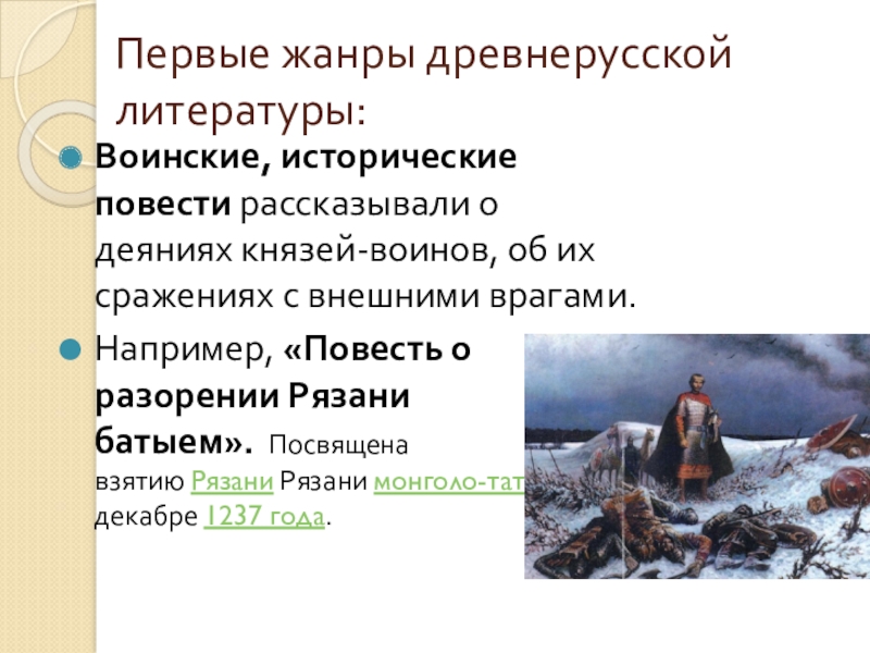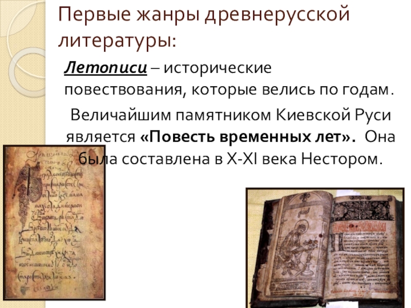 Первые жанры древнерусской литературы: