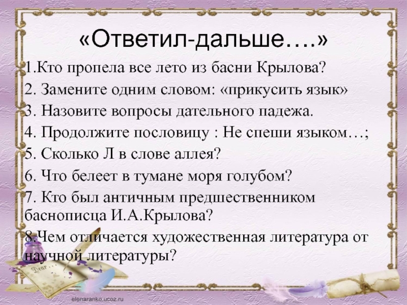 7. Кто был античным предшественником баснописца И.А.Крылова?