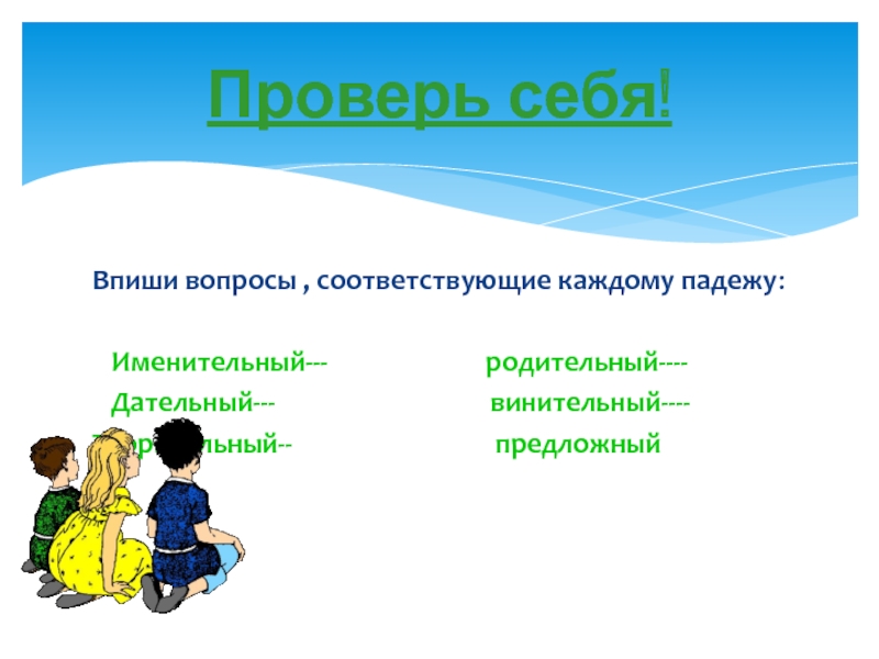 Слайд 30Впиши вопросы , соответствующие каждому падежу: