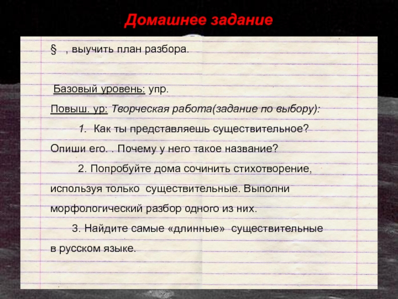 2. Попробуйте дома сочинить стихотворение, используя только существительные. Выполни морфологический разбор одного из них.