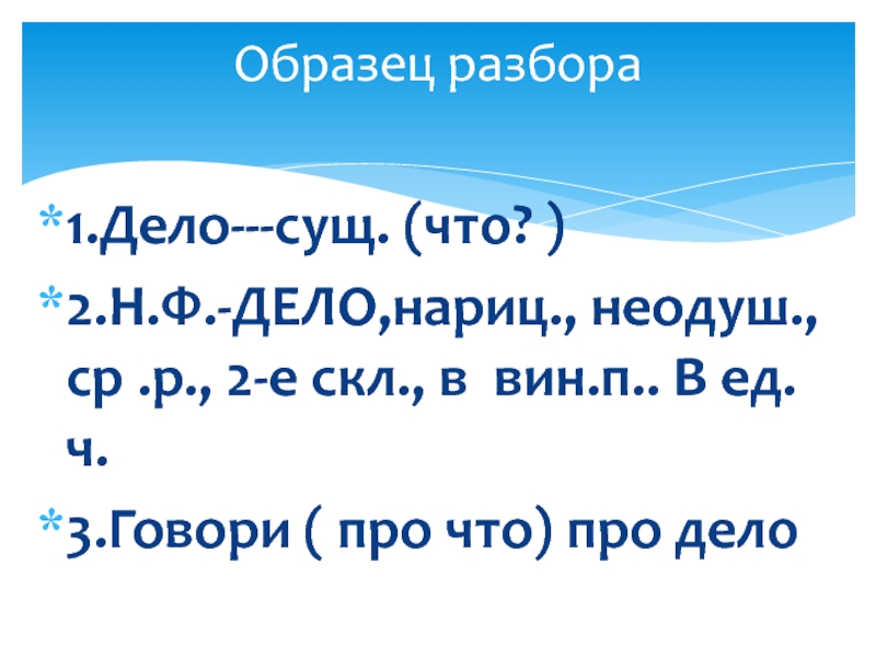 1.Дело---сущ. (что? )