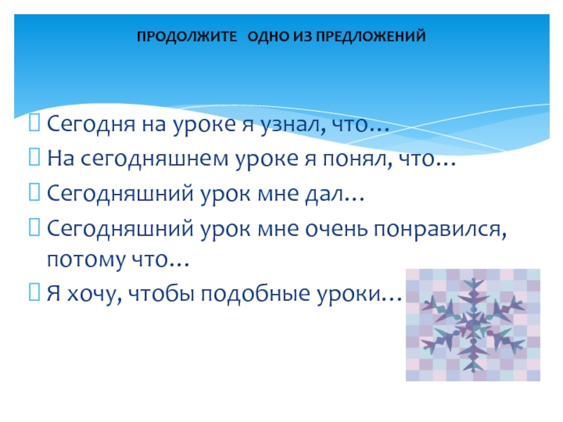 На сегодняшнем уроке я понял, что…