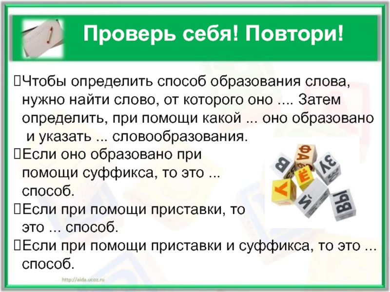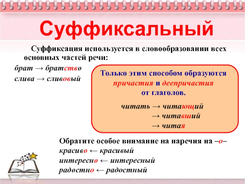 Слова, образованные приставочным способом, всегда относятся к той же части речи, что и слова, от которых они образованы.