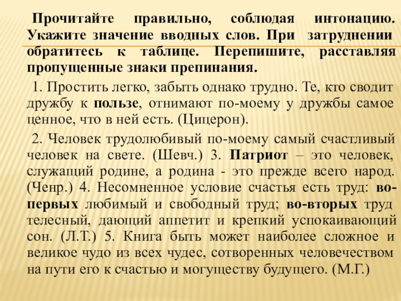 Слайд 16 Прочитайте правильно, соблюдая интонацию. Укажите значение вводных слов. При затруднении обратитесь
