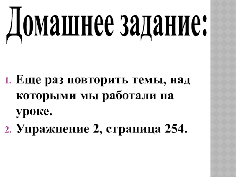 Еще раз повторить темы, над которыми мы работали на уроке.