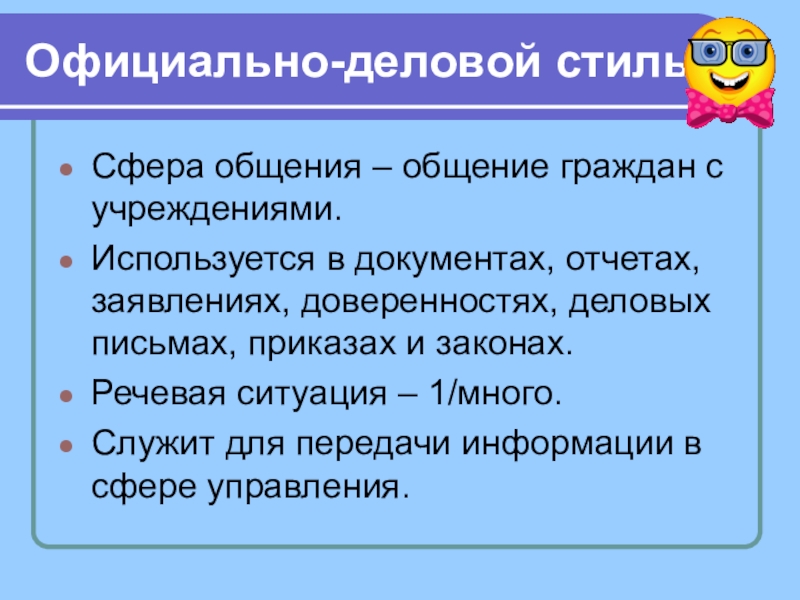 отчетах, заявлениях, доверенностях, деловых письмах, приказах и законах.