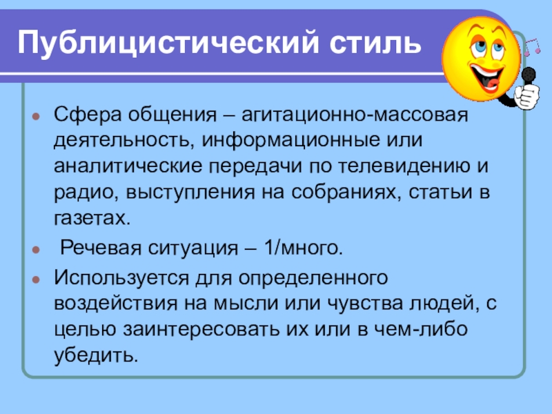 Сфера общения – агитационно-массовая деятельность, информационные или аналитические передачи по