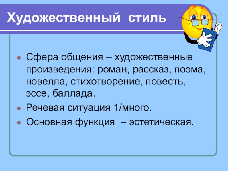 Сфера общения – художественные произведения: роман, рассказ, поэма, новелла, стихотворение,