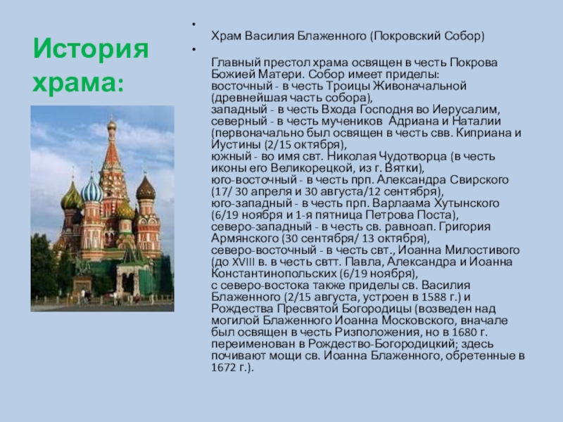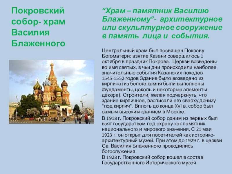 “Храм – памятник Василию Блаженному”- архитектурное или