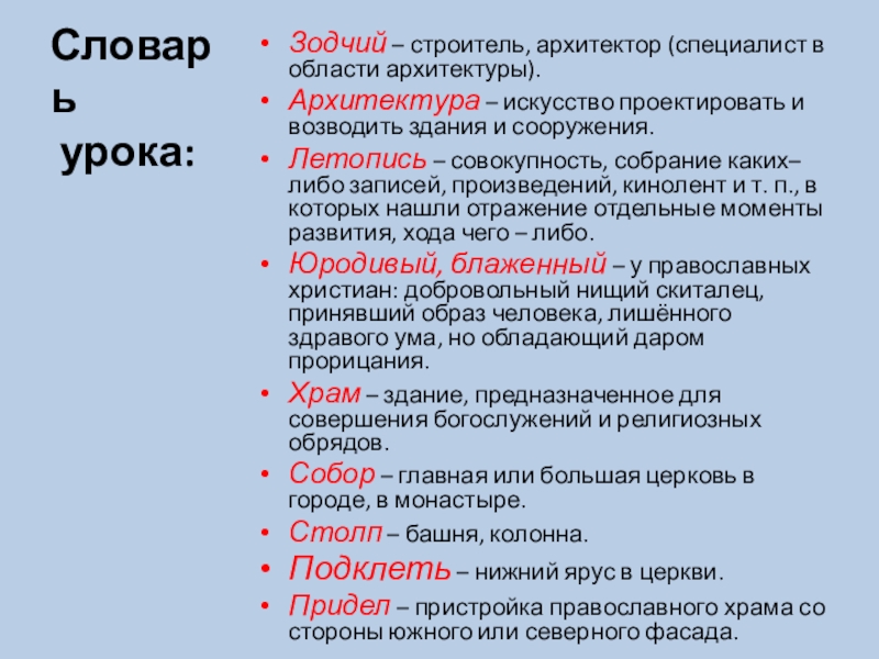 Зодчий – строитель, архитектор (специалист в области архитектуры).