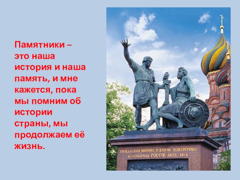 Слайд 18Памятники – это наша история и наша память, и мне кажется,